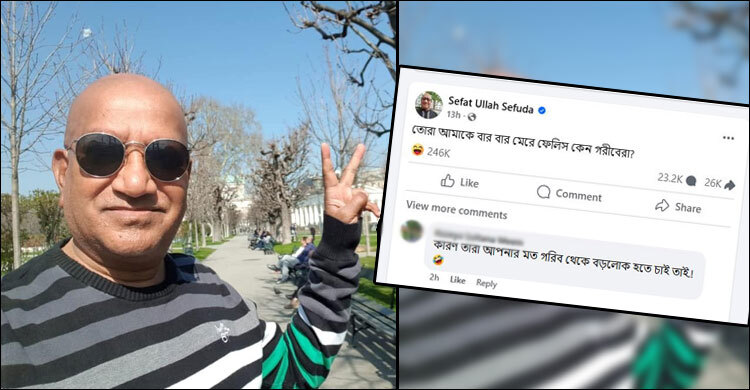 সেফাত উল্লাহ সেফুদা নামক ভেরিফায়েড পেজে তিনি লিখেছেন, ‘তোরা আমাকে বার বার মেরে ফেলিস কেন গরিবেরা?’ তার এ পোস্টে প্রতিবেদন লেখা পর্যন্ত ২ লাখ ৪৬ হাজার রিঅ্যাক্ট, ২৩ হাজার ২শ কমেন্টস এবং ২৬ হাজার শেয়ার লক্ষ্য করা গেছে।