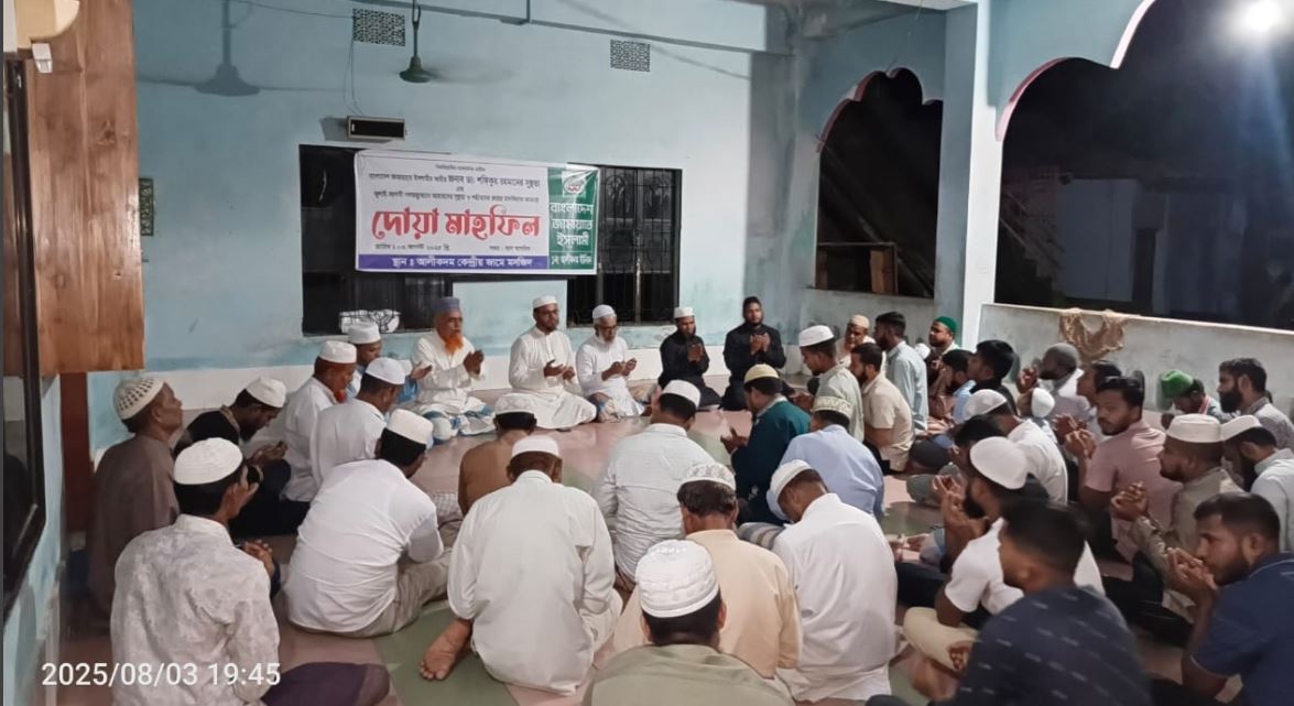 বান্দরবানের আলীকদমে আজ ০৩ আগষ্ট ২০২৫ খ্রিঃ রোজ- রবিবার বাংলাদেশ জামায়াতে ইসলামী আলীকদম সদর ইউনিয়ন শাখার আয়োজনে জামায়াতে ইসলামীর আমীর জনাব ডাঃ শফিকুর রহমানের সুস্থতা কামনায় এবং ২০২৪ এর জুলাই- আগষ্ট গণঅভ্যুত্থানে আহতদের সুস্থতার জন্য শহীদদের রুহের মাগফিরাত কামনা করে দোয়া মাহফিল অনুষ্ঠিত হয়েছে।