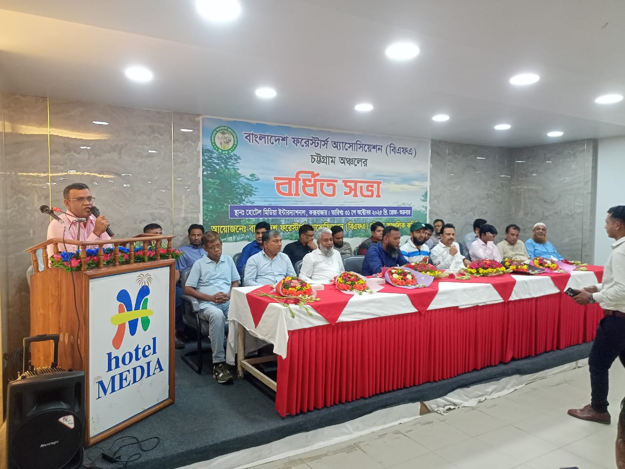 বাংলাদেশ ফরেস্টার্স অ্যাসোসিয়েশন (বিএফএ) এর চট্টগ্রাম অঞ্চলের বর্ধিত সভা অনুষ্ঠিত হয়েছে সমুদ্র নগরী কক্সবাজারে। শুক্রবার (৩১ অক্টোবর) সন্ধ্যায় শহরের হোটেল মিডিয়া ইন্টারন্যাশনাল লিমিটেডের কনফারেন্স হলে উৎসবমুখর পরিবেশে এই সভা হয়। সভায় সভাপতিত্ব করেন বিএফএ চট্টগ্রাম অঞ্চলের সভাপতি মো. সরওয়ার জাহান।