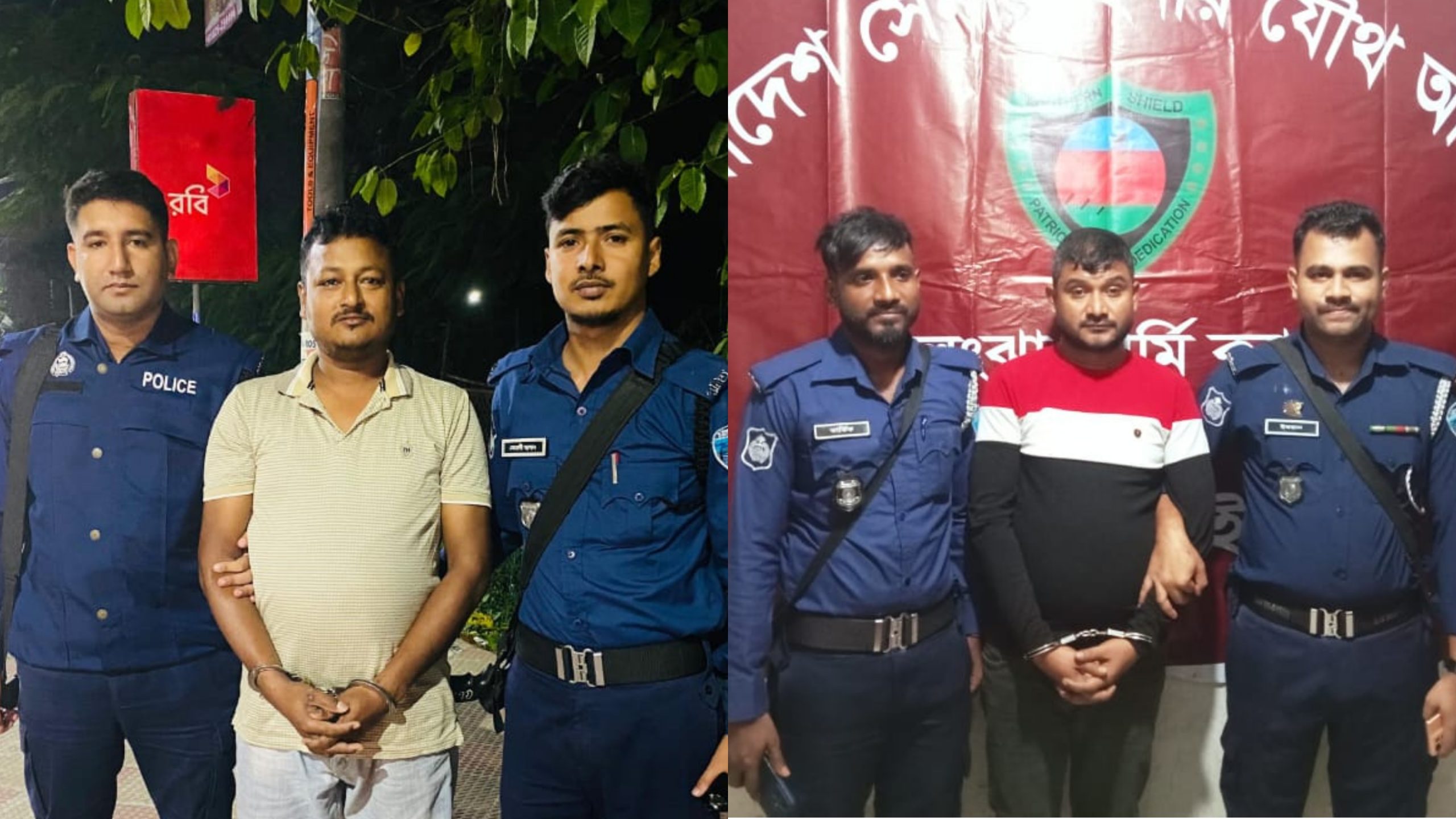 রবিবার রাত ১০টার দিকে শহরের বাজারঘাটা এবং উত্তর আদর্শগ্রাম এলাকায় পৃথক অভিযান পরিচালনা করে তাদের আটক করা হয়।