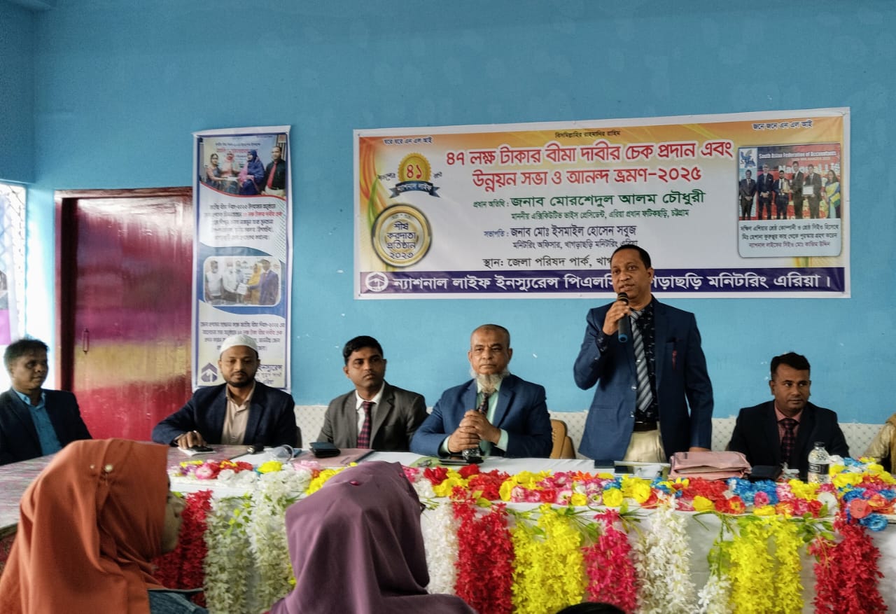 ২৩ জানুয়ারি বৃহস্পতিবার দুপুরে খাগড়াছড়ি জেলা পরিষদ পার্কে এ সভার আয়োজন করা হয়। সভায় সদ্য পদোন্নতি প্রাপ্ত খাগড়াছড়ি মনিটরিং এরিয়ার মনিটরিং অফিসার মো. ইসমাইল হোসেন সবুজের সভাপতিত্বে প্রধান অতিথির বক্তব্য রাখেন, চট্টগ্রামের ফটিকছড়ি এরিয়া প্রধান ও এক্সিকিউটিভ ভাইস প্রেসিডেন্ট মোরশেদুল আলম চৌধুরী। তিনি বলেন, ন্যাশনাল লাইফ ইন্সুইরেন্স কোম্পানী সঠিক সময়ে গ্রাহকের দাবি পরিশোধ করে। আমাদের বীমা কর্মীরা গ্রাহকের বাড়ি গিয়ে দাবির চেক পৌঁছে দিয়ে আসে। এজন্য ন্যাশনাল লাইফ ইন্সুইরেন্স কোম্পানীর প্রতি মানুষের আস্থা বেড়েছে।