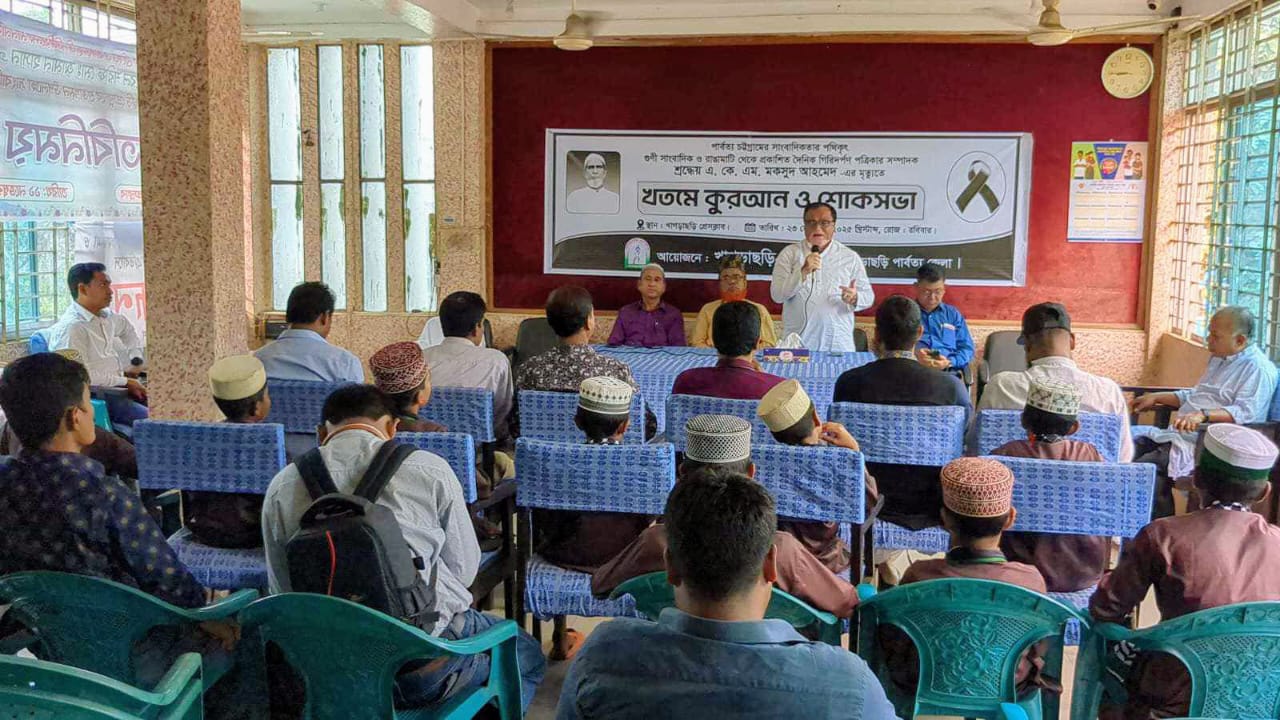 খাগড়াছড়িতে পাহাড়ের প্রবীণ ও গুণী সাংবাদিক একে এম মকসুদ আহমেদ'র মৃত্যুতে খতমে কুরআন ও শোকসভা অনুষ্ঠিত হয়েছে।