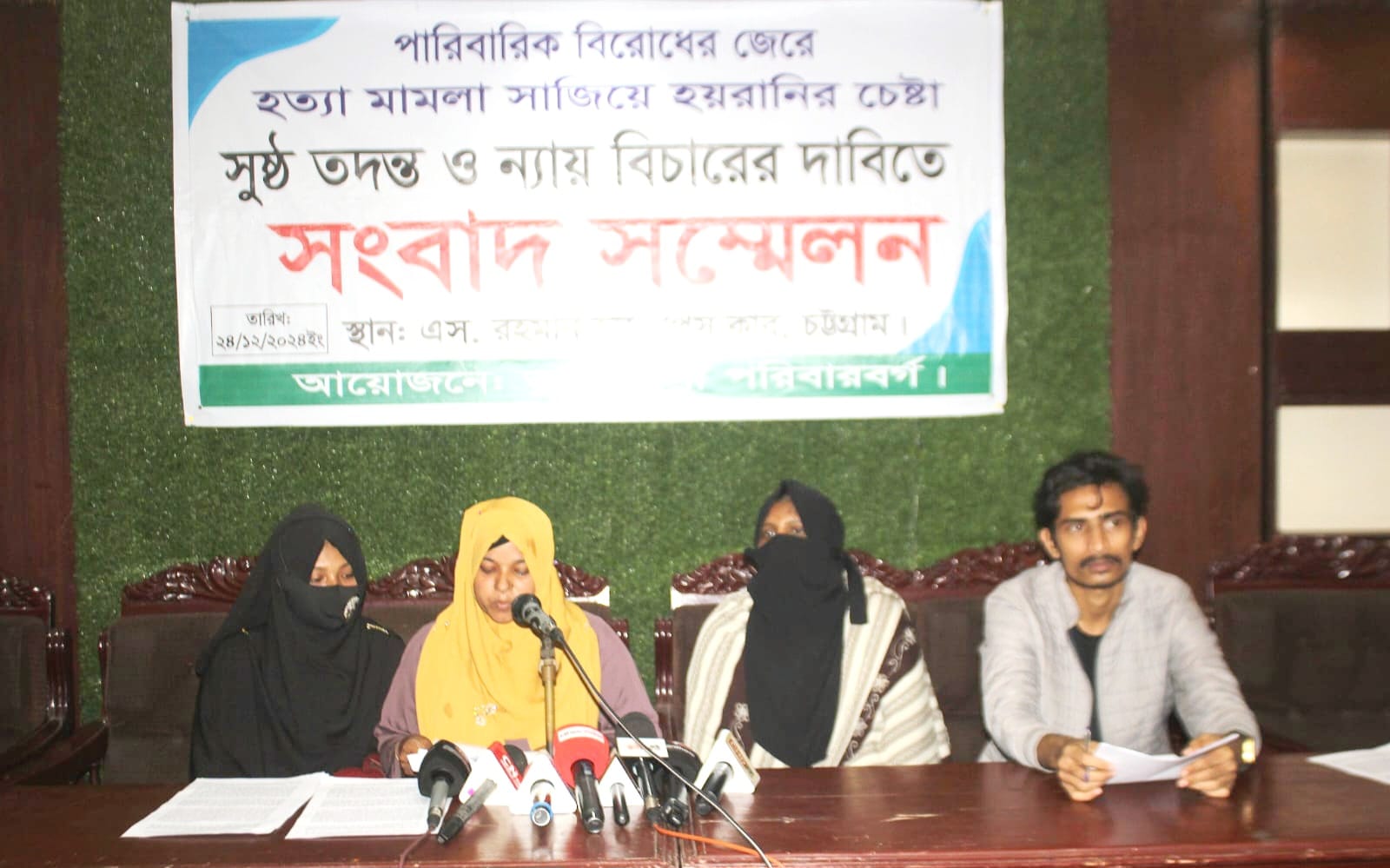 চট্টগ্রামের বাঁশখালী উপজেলার ৫ নম্বর ওয়ার্ডের ৩নং খানকানাবাদ ইউনিয়নের পূর্ব ডংরা এলাকার জমি নিয়ে পূর্ব বিরোধের জেরে একটি মিথ্যা হত্যা মামলা সাজিয়ে একটি পরিবারকে পুরুষ শূন্য করে সম্পদ আত্মসাতের ষড়যন্ত্রের অভিযোগ করেছে ভূক্তভোগী একটি পরিবার। ২৪ ডিসেম্বর মঙ্গলবার বেলা বারোটায় চট্টগ্রাম প্রেসক্লাবের এস. রহমান হলে আয়োজিত সংবাদ সম্মেলনে ভূক্তভোগী পরিবার এই অভিযোগ করেন।