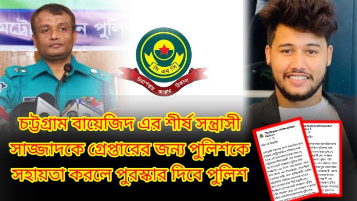 বারবার অভিযান চালিয়েও খুন, চাঁদাবাজি, অস্ত্রবাজিতে সর্বেসর্বা শীর্ষ সন্ত্রাসী ‘ছোট সাজ্জাদ’ এর টিকিটিও ছুঁতে পারেনি পুলিশ। পুলিশের চোখে ধুলো দিয়ে পালিয়ে বেড়ানোর মধ্যেই ওসিকে প্রকাশ্যে পেটানোর হুমকি দিয়ে আদালতে আত্মসমর্পণের ঘোষণা দিয়েছেন। এরপরই নড়চড়ে বসেছে নগর পুলিশ। তাকে ধরতে ঘোষণা করেছে নগদ অর্থ পুরস্কার।বৃহস্পতিবার (৩০ জানুয়ারি) বিকেলে সিএমপি কমিশনার হাসিব আজিজের পক্ষে গণমাধ্যমে পাঠানো এক বিজ্ঞপ্তিতে এ তথ্য জানানো হয়।বিজ্ঞপ্তিতে বলা হয়, চট্টগ্রামের শীর্ষ সন্ত্রাসী মো. সাজ্জাদ হোসেনকে আইনের আওতায় আনার জন্য তার অবস্থান সংক্রান্তে সঠিক তথ্য দিয়ে পুলিশকে যে সহায়তা করবে, তাকে চট্টগ্রাম মেট্রোপলিটন পুলিশের পক্ষ থেকে উপযুক্ত অর্থ পুরস্কারে পুরস্কৃত করা হবে। সংবাদদাতার সহায়তাকারীর পরিচয় অবশ্যই গোপন রাখা হবে।চট্টগ্রামের হাটহাজারী, বায়েজিদ বোস্তামি, চান্দগাঁও এবং পাঁচলাইশ এলাকার মূর্তিমান আতঙ্ক দুর্ধর্ষ সন্ত্রাসী সাজ্জাদ ওরফে ‘বুড়ির নাতি’। হত্যা, অস্ত্র, চাঁদাবাজিসহ ১০টিরও বেশি মামলার আসামি তিন। বায়েজিদ বোস্তামী থানা-সংলগ্ন হাটহাজারীর শিকারপুরের মো. জামালের ছেলে সাজ্জাদ। আলোচিত এইট মার্ডার মামলার মৃত্যুণ্ডাদেশপ্রাপ্ত আসামি জামায়াত-শিবির ‘ক্যাডার’ হিসেবে পরিচিত সাজ্জাদ আলী খানের সহযোগী হিসেবে এই ‘ছোট সাজ্জাদ’ অপরাধজগতে পা রাখেন। বিদেশে বসেই সাজ্জাদ আলী খান নির্মাণাধীন ভবন, বাসাবাড়ি এমনকি ব্যবসা প্রতিষ্ঠানে চাঁদাবাজি করান তাকে দিয়ে।সবশেষ গত ২৮ জানুয়ারি রাতে ফেসবুক লাইভে এসে বায়েজিদ থানার ভারপ্রাপ্ত কর্মকর্তা আরিফুর রহমানকে প্রকাশ্যে পেটানোর হুমকি দেন তিনি। ফেসবুক লাইভে সাজ্জাদ হুমকি দিয়ে বলেন, ‘তোর (ওসি) যদি শাস্তি না হয়, আমি তোকে কুত্তার মতো পেটাবো। অক্সিজেন থেকে বায়েজিদ পর্যন্ত কুত্তার মতো ন্যাংটা করে পেটাবো। কোর্টের রায় আসা পর্যন্ত তোরা টিকে থাকবি। যেখানেই থাকস আমি পিটাবো। প্রয়োজনে আমি মরে যাবো, তোদেরকে মেরে। তবুও আমি হার মানবো না। দেখি, তোদের জোর বেশি না আমার। আরিফ তুই প্রস্তুত থাকিস। তোর উচ্চপদস্থ যারা আছে তাদেরকে বলিস।’ এ ঘটনায় থানায় একটি সাধারণ ডায়েরি করেন ওই ওসি।