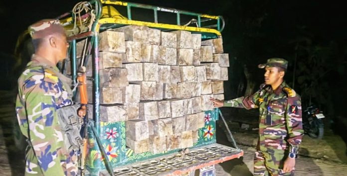 দীঘিনালাতে সেনা অভিযানে অবৈধ কাঠ জব্দ