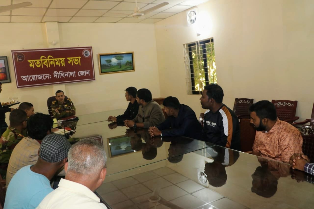 রবিবার সকাল ১১টায় দীঘিনালা সেনা জোন সদরে দীঘিনালার সার্বিক পরিস্থিতি, এবং রাঙ্গামাটির সাজেক ভ্যালিতে পর্যটকদের নিরাপদ ভ্রমন সহ স্থানীয় সমসাময়িক বিষয়ের উপর গুরুত্বারোপ করে এ মতবিনিময় সভা অনুষ্ঠিত হয়।