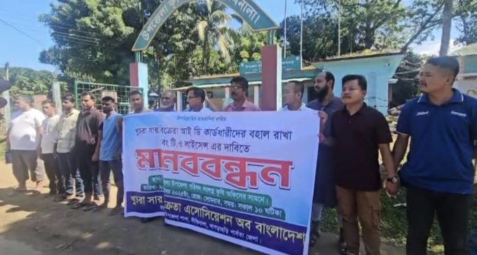 দীঘিনালায় খুচরা সার বিক্রেতাদের মানববন্ধন