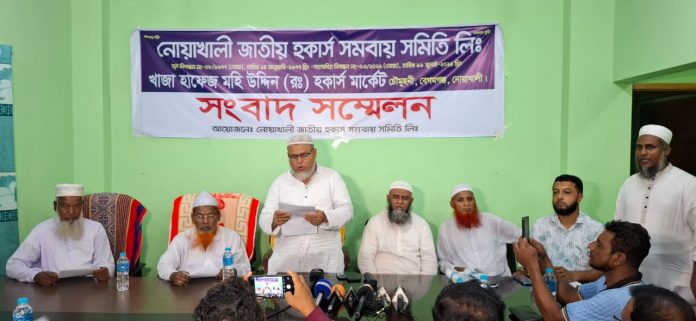 বুধবার (৮ অক্টোবর) সকাল সাড়ে ১০টার দিকে উপজেলার চৌমুহনী বাজারে সমিতির নিজস্ব কার্যালয়ে আয়োজিত সংবাদ সম্মেলন এ অভিযোগ করেন নোয়াখালী জাতীয় হকার্স সমবায় সমিতি লিমিটেডের ভাইস চেয়ারম্যান হাজী মো.ইউছুফ। তিনি সংবাদ সম্মেলনে লিখিত বক্তব্য পাঠ করেন।