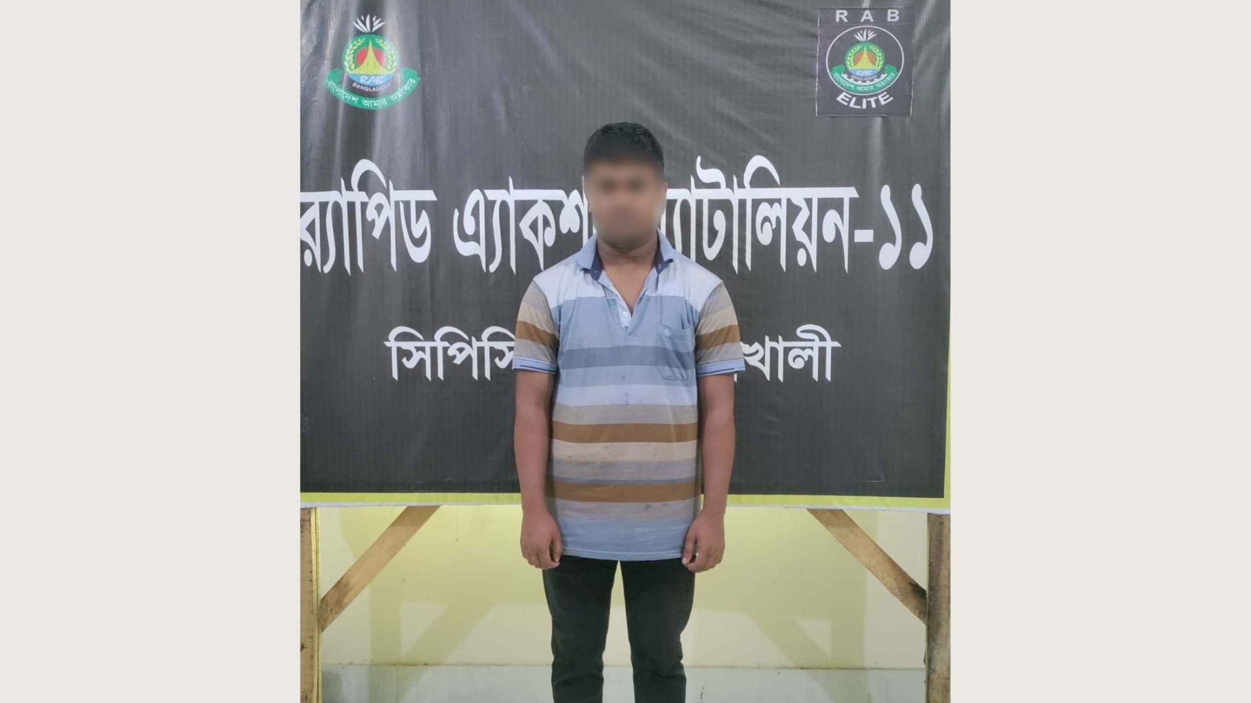 গ্রেপ্তার রাকিব নোয়াখালীর বেগমগঞ্জ উপজেরার রামগঞ্জ ইউনিয়নের রাজেন্দ্রপুর বড় কান্দাজ বাড়ির জামাল উদ্দিনের ছেলে।