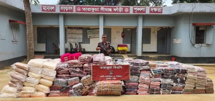ফেনীতে বিজিবির অভিযানে কোটি টাকার ভারতীয় শাড়ী-কাপড় জব্দ করা হয়।