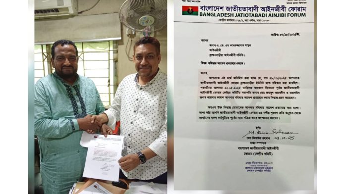 বহিষ্কার আদেশ প্রত্যাহার: বিএনপি সমর্থিত জাতীয়তাবাদী আইনজীবী ফোরামে ফিরলেন কামরুজ্জামান মামুন