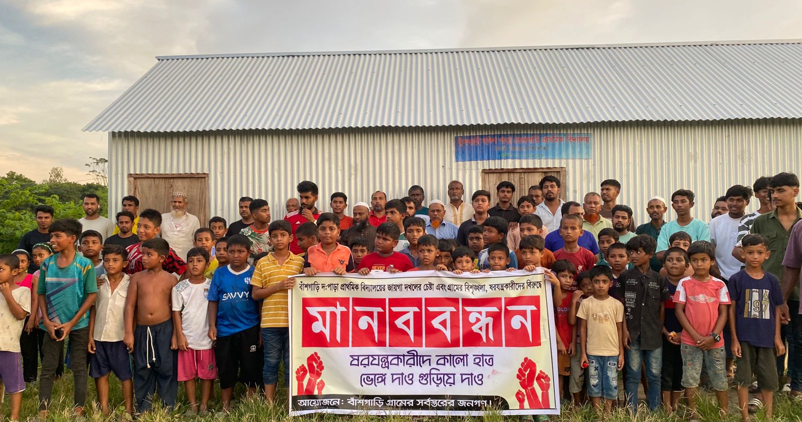 বাঁশগাড়ি দক্ষিণপাড়া প্রাথমিক বিদ্যালয় স্থাপন ও জমি রক্ষায় গ্রামবাসীর মানববন্ধন