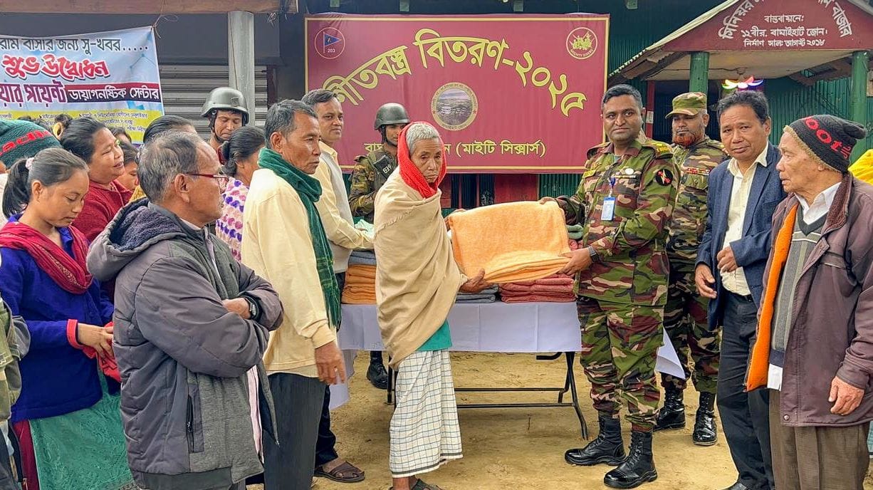 বৃহস্পতিবার সাজেক ইউনিয়নের ৪ ও ৫নং ওয়ার্ডের বিভিন্ন গ্রামের ২শতাধিক হতদরিদ্র, দুস্থ পাহাড়ি ও বাঙালি পরিবারের মাঝে শীতবস্ত্র বিতরণ করেন বাঘাইহাট সেনা জোনের অধিনায়ক লে. কর্ণেল মো. খায়রুল আমিন (পিএসসি)।