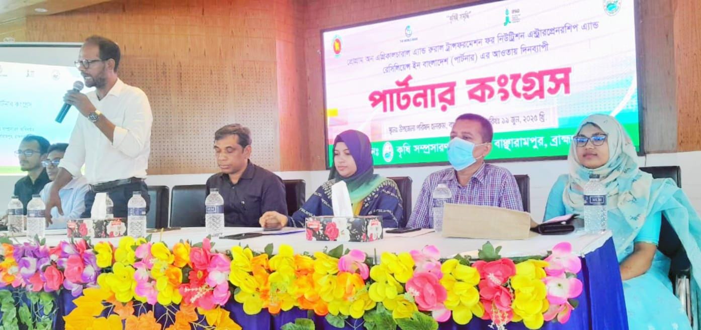 ব্রাহ্মণবাড়িয়ার বাঞ্ছারামপুর উপজেলায় অনুষ্ঠিত হলো দিনব্যাপী পার্টনার কংগ্রেস, যা বাস্তবায়িত হচ্ছে প্রোগ্রাম অন এগ্রিকালচার অ্যান্ড রুরাল ট্রান্সফরমেশন ফর নিউট্রিশন, এন্টারপ্রেনরশিপ অ্যান্ড রেসিলিয়েন্স ইন বাংলাদেশ (পার্টনার) প্রকল্পের আওতায়। এ আয়োজনের উদ্যোগ নেয় উপজেলা কৃষি সম্প্রসারণ অধিদফতর।