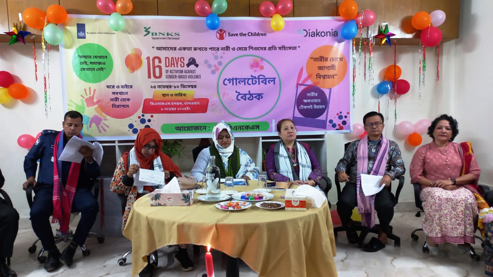 মঙ্গলবার (১০ ডিসেম্বর) সকালে বিএনকেএস এর আয়োজনে ডিয়াকোনিয়া বাংলাদেশ ও সেভ দ্য চিলন্ড্রেন এর সহযোগিতায় বান্দরবানের বিএনকেএস এর হলরুমে ২৫ নভেম্বর থেকে শুরু হওয়া আন্তর্জাতিক নারী নির্যাতন প্রতিরোধ পক্ষ ১৬ দিনের কর্মসূচি শেষে এই গোল টেবিল বৈঠক অনুষ্ঠিত হয়। এসময় অনুষ্ঠানে প্রধান অতিথি হিসেবে উপস্থিত ছিলেন বান্দরবান জেলা লিগ্যাল এইড অফিসার (সিনিয়র সহকারী জজ) হোসনে আরা বেগম।