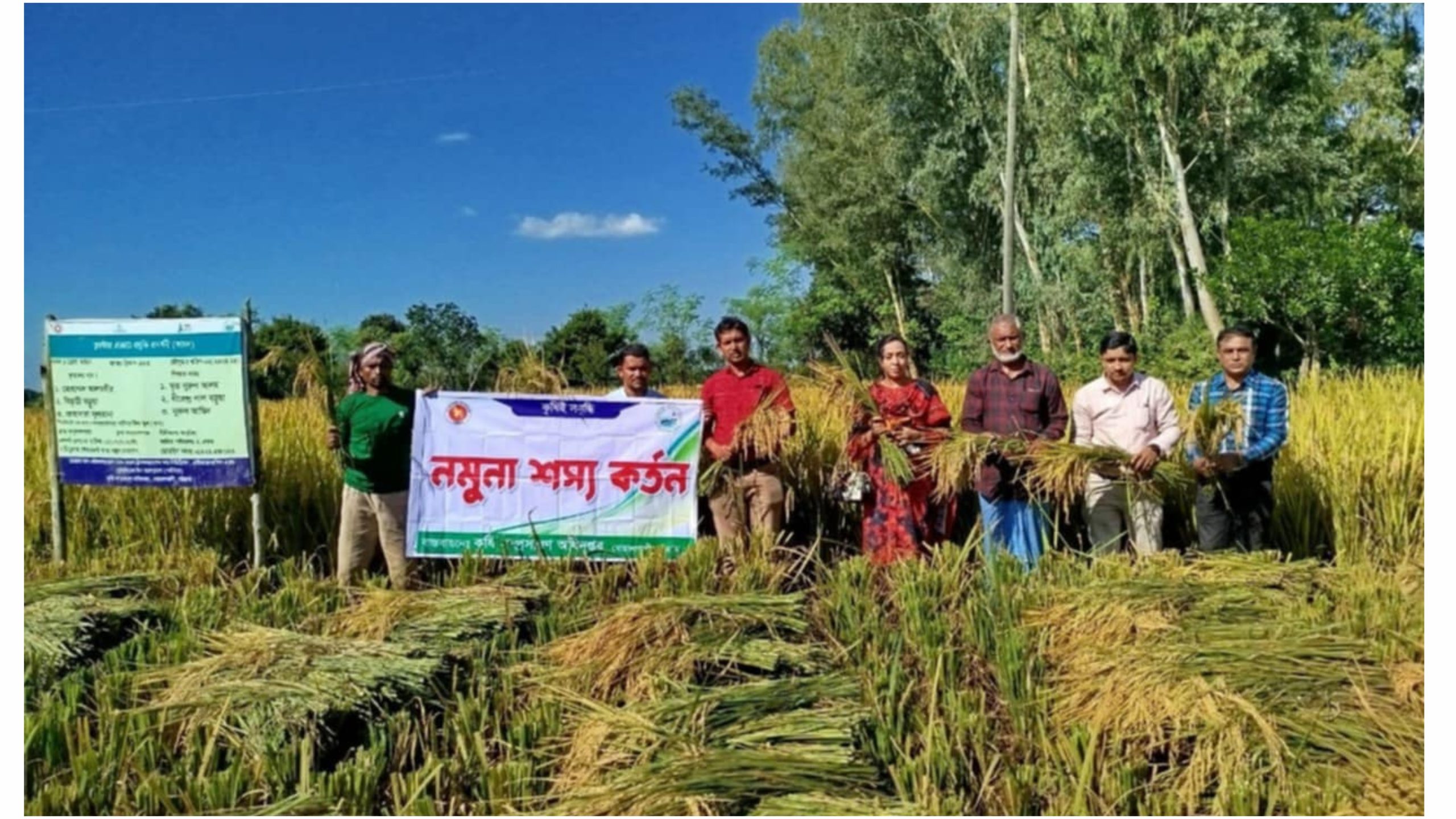 ২০ বর্গমিটার আয়তনের ধান কেটে আর্দ্রতা ও হেক্টর প্রতি ফলন নির্ধারণ করা হয়। উপজেলা কৃষি অফিসার কল্পনা রহমান জানান, নমুনা শস্য কর্তনে কৃষকদের জমি থেকে উচ্চ ফলন লক্ষ্য করা গেছে।