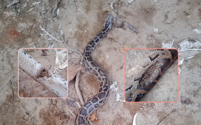 উদ্ধারকৃত অজগরটির শরীরে চার-পাঁচটি স্থানে ক্ষতচিহ্ন রয়েছে।