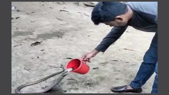 অয়ন বলেন, “সাপটি অনেকটা দুর্বল হয়ে পড়েছিল। পরে আমি মগ ভর্তি পানি দিলে সেটি ধীরে ধীরে পান করতে থাকে।”