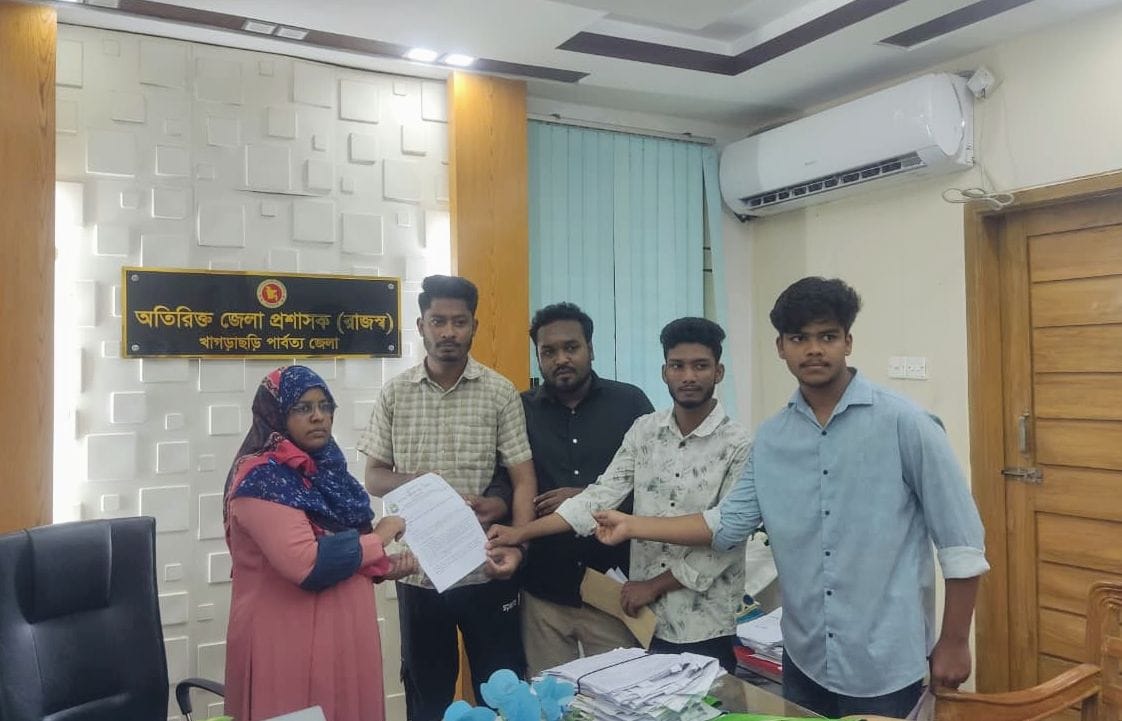 বৃহস্পতিবার (১৬ অক্টোবর) সকালে খাগড়াছড়ি জেলা প্রশাসকের কার্যালয়ে অতিরিক্ত জেলা প্রশাসক (সার্বিক) ফেরদৌসী বেগমের নিকট এ স্মারকলিপি প্রদান করা হয়।