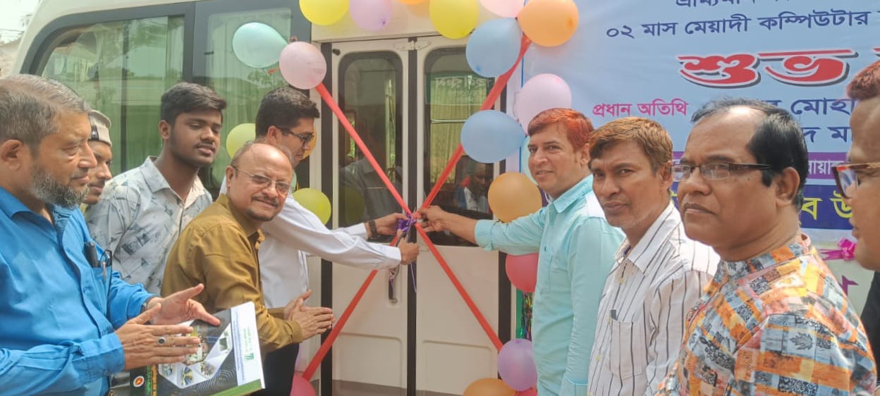 দেখা গেছে, এসি বাসের ভেতরে আসনের সামনে একটি করে রয়েছে কম্পিউটার। সেই কম্পিউটারে বসেই তরুণ তরুণীরা নিচ্ছেন প্রশিক্ষণ।