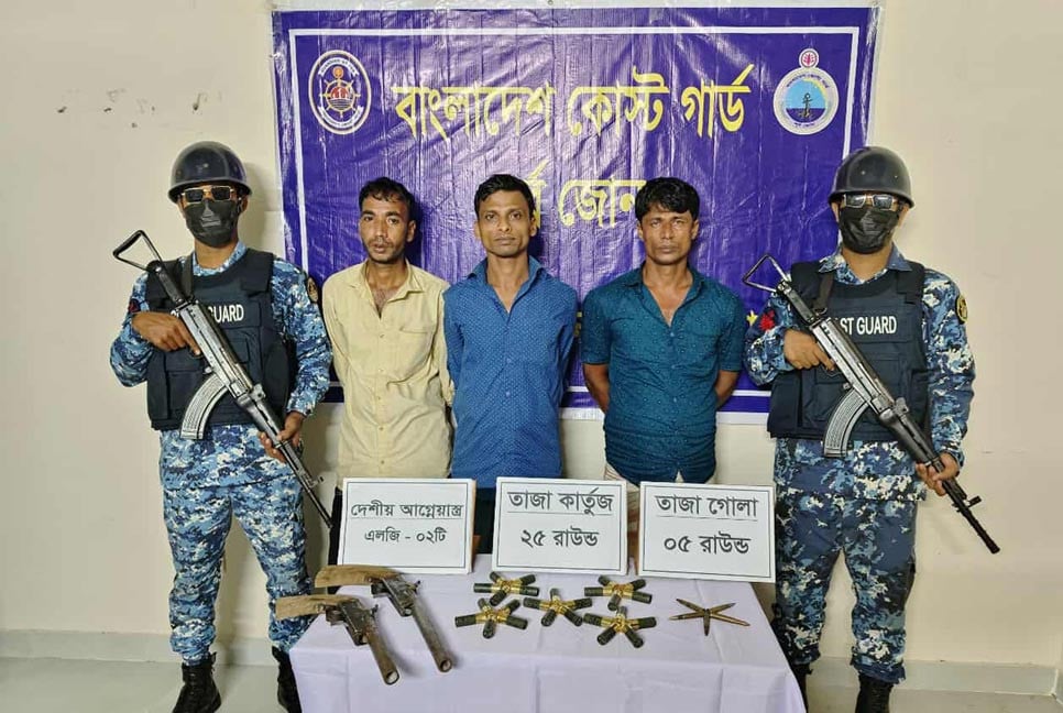 কক্সবাজারের মহেশখালীতে দুইটি দেশীয় আগ্নেয়াস্ত্র ও বিপুল পরিমাণ গোলাবারুদসহ তিনজন কুখ্যাত সন্ত্রাসীকে আটক করেছে কোস্ট গার্ড।