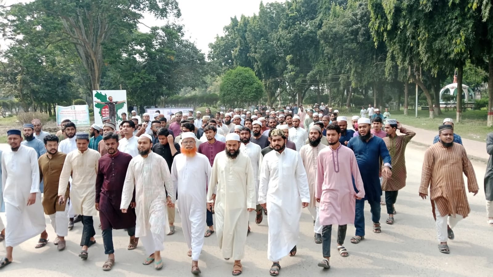 শুক্রবার (১৭ অক্টোবর) বাদ জুমা কেন্দ্রীয় মসজিদ থেকে বিক্ষোভ মিছিল শুরু হয়ে প্রধান ফটকে গিয়ে শেষ হয় এবং সংক্ষিপ্ত সমাবেশ করে তারা।