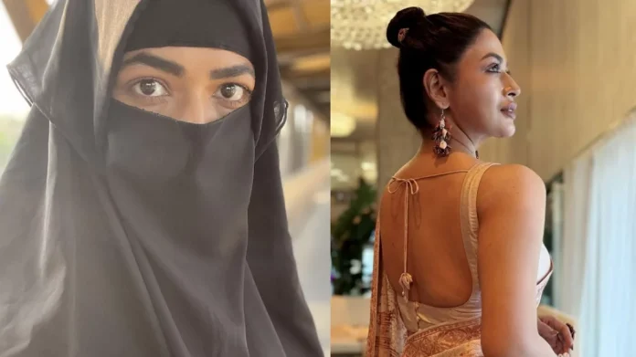 পোস্টে দুটি ছবি কোলাজ করে শেয়ার করেন বাঁধন। তাতে দেখা যায়, একটা তে বোরকা পরে আছেন, অন্যটি শাড়ি। দুটি ছবির সঙ্গে ছিল এক ইঙ্গিতপূর্ণ বার্তাও।