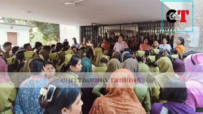 রবিবার নার্সিং ইনস্টিটিউট শিক্ষার্থীদের স্টুডেন্ট কাউন্সিল গঠনে নির্বাচনকে কেন্দ্র করে শিক্ষার্থীদের অংশগ্রহণে পক্ষপাতিত্ব করেছে উল্লেখ করে সকল শিক্ষকদের পদত্যাগের দাবিতে এই বিক্ষোভ করেন তারা।