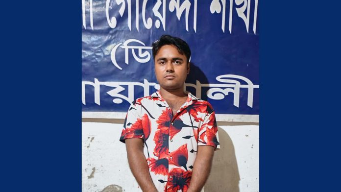 রোববার (২৬ এপ্রিল) সকালে বিষয়টি নিশ্চিত করেন জেলা গোয়েন্দা শাখা (ডিবি) পুলিশের ভারপ্রাপ্ত কর্মকর্তা (ওসি) মো.মহিউদ্দিন। এর আগে, গতকাল শনিবার রাতে উপজেলার রাজগঞ্জ ইউনিয়নের ৩নম্বর ওয়ার্ডের আলাদীনগর এলাকায় অভিযান চালিয়ে গ্রেপ্তার করা হয়। এ সময় তার দেহ তল্লাশি করে ১০০ পিস ইয়াবা উদ্ধার করা হয়।
