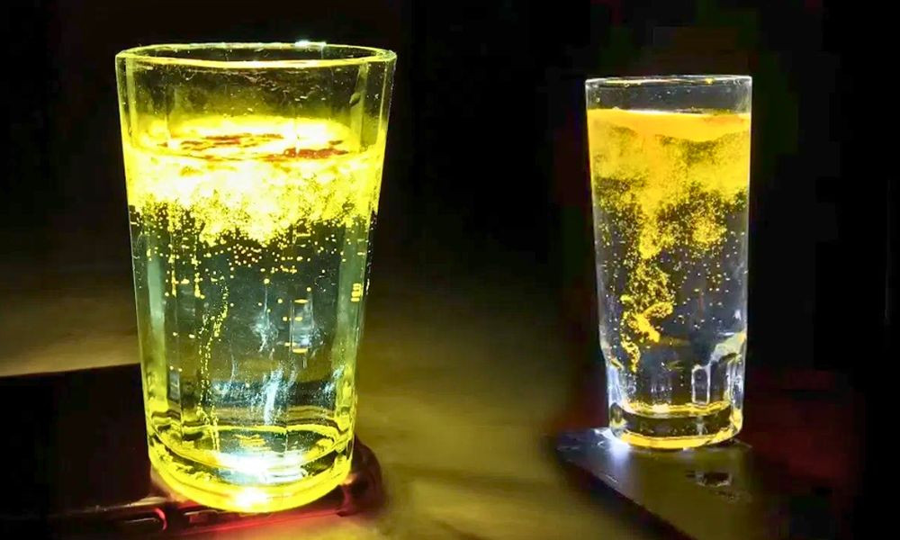 প্রথমে একটি ফোনে ফ্ল্যাশ জ্বালিয়ে তা উল্টে রাখতে হবে। এবার কাচের গ্লাসে পানি ভর্তি করে সেই গ্লাস রাখতে হবে জ্বলন্ত ফ্ল্যাশ লাইটের ওপরে। তারপর ঘরের আলো নিভিয়ে কাচের গ্লাসের মধ্যে ফেলে দিতে হবে এক চিমটে হলুদ গুঁড়া।