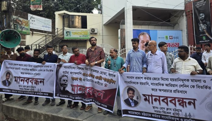 চট্টগ্রামে কর্মরত সাংবাদিকবৃন্দ ও নাগরিক সমাজের ব্যানারে আয়োজিত এ কর্মসূচিতে অংশগ্রহণকারীরা অভিযোগ করেন, একটি স্বার্থান্বেষী চক্র পরিকল্পিতভাবে সাংবাদিকদের বিরুদ্ধে মিথ্যা মামলা দায়ের করে হয়রানি করছে, যা স্বাধীন সাংবাদিকতার জন্য মারাত্মক হুমকি।