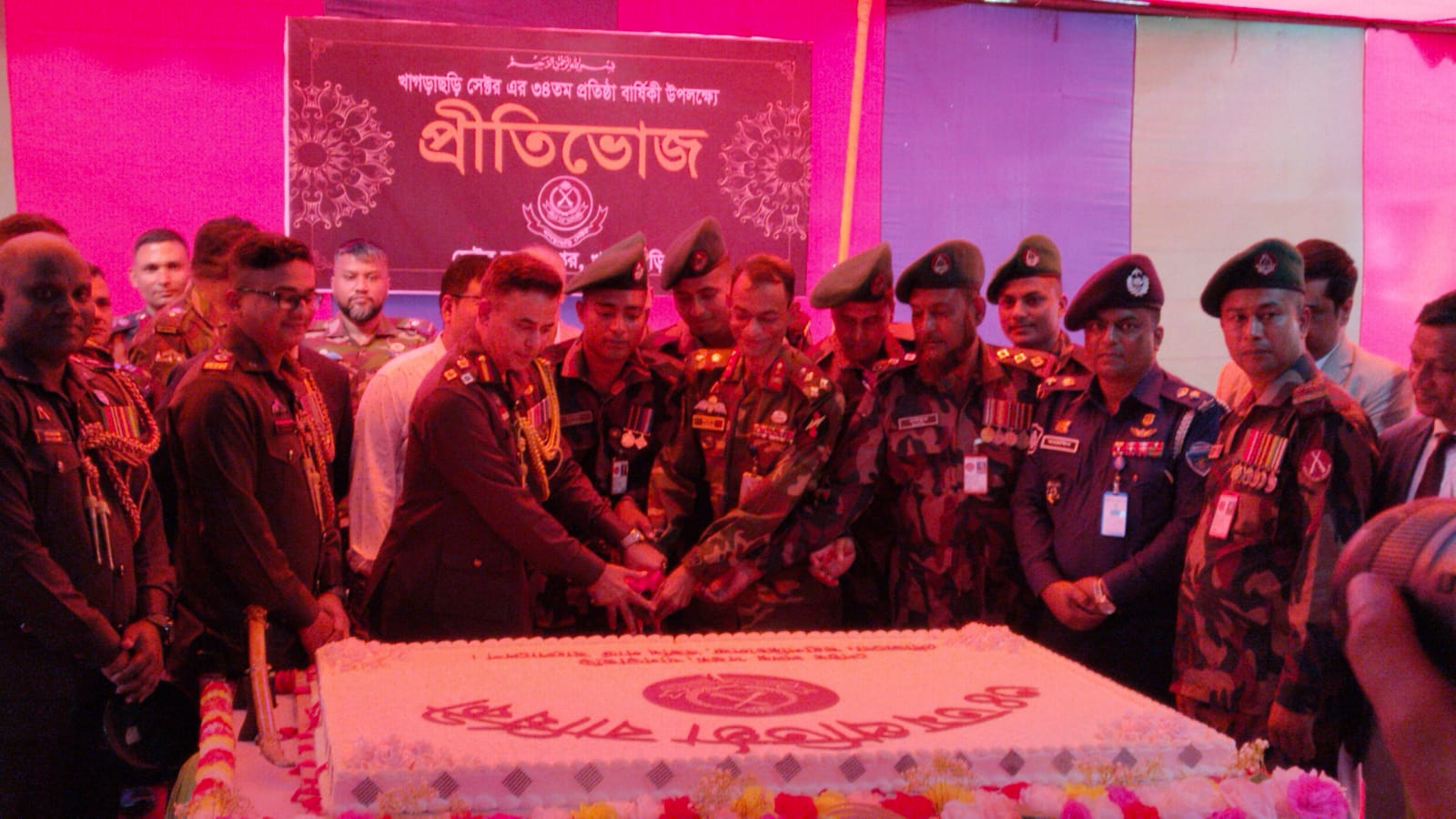 রবিবার (১ ডিসেম্বর) দুপুরে বাংলাদেশ বর্ডার গার্ড খাগড়াছড়ি সেক্টর সদরে ৩৪ তম প্রতিষ্ঠাবার্ষিকী উপলক্ষে কেক কাটা, আলোচনা সভা এবং বিশেষ প্রীতিভোজের আয়োজন করা হয়। সভায় আলোচনার পর্যায়ে সেক্টর সদর দপ্তর খাগড়াছড়ি এবং এর আওতাধীন জোনগুলো সহ বিজিবির সদস্যের উল্লেযোগ্য সাফল্যের কথা ও চিত্র তুলে ধরা হয়।