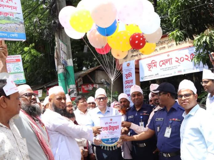 আধুনিক বাংলাদেশ বিনির্মাণে স্বচ্ছ,দক্ষ ও টেকসই ভূমি ব্যবস্থাপনার মাধ্যমে ভূমির সর্বোত্তম ব্যবহার এবং ভূমি সংক্রান্ত জনবান্ধব সেবা নিশ্চিতকরণের লক্ষ্যে সরকার নানাবিধ কার্যক্রম গ্রহণ করেছে।এই সকল কার্যক্রম বহুল প্রচারের লক্ষ্যে আজ ২৫ মে ২০২৫ থেকে আগামী ২৭ মে ২০২৫ পর্যন্ত তিন দিনব্যাপী ফেনী জেলা প্রশাসন, ফেনীর উদ্যোগে ভূমি মেলা ২০২৫ আয়োজন করা হয়েছে।২৫ মে ২০২৫ সকাল ১০ টায় ফেনী সদর উপজেলা ভূমি অফিসের সামনে বেলুন ফেস্টুন উড়িয়ে ফেনী জেলা প্রশাসক সাইফুল ইসলাম অন্যান্য সকলের উপস্থিতিতে ভূমি মেলা ২০২৫ এর শুভ উদ্বোধন করেন।