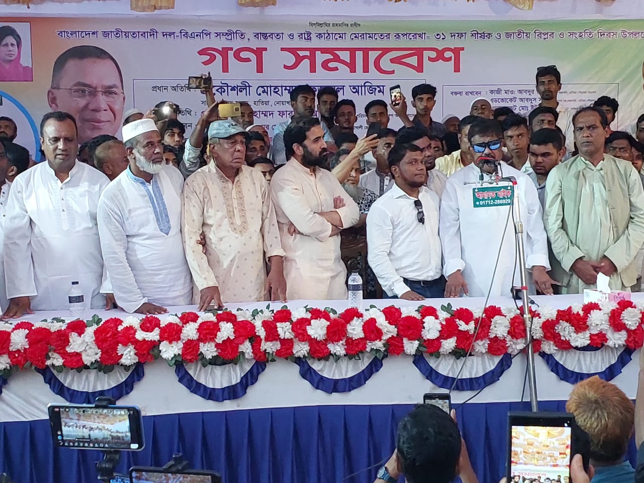 গণসমাবেশে সাবেক এমপি প্রকৌশলী মোহাম্মদ ফজলুল আজিম বলেন, ১৭ বছর ধরে তারেক রহমান স্বৈরাচারের বিরুদ্ধে লড়াই করে দলকে শক্তিশালী করেছেন। তাই তার প্রতি সমর্থন জানিয়ে বলেন, ইতোমধ্যে বাংলাদেশের প্রায় সব গুলো সীটে অস্থায়ী ভাবে নাম ঘোষণা করা হয়েছে। হাতিয়ার জন্য আপনারা সবাই ক্ষুব্ধ, আমিও ক্ষুব্ধ বটে। কিন্তু আপনারা অতীতে আমার পাশে যেভাবে ছিলেন সেভাবে যদি থাকেন তাহলে আমরা সফল হবে। আর আমার অবর্তমানে আমার ছেলেকে ভালবাসা দিবেন। তিনি আগামী সংসদ নির্বাচনে তার ছেলে প্রকৌশলী মোহাম্মদ ফারহান আজিমকে সকলে সহযোগিতা করার অনুরোধ জানান।