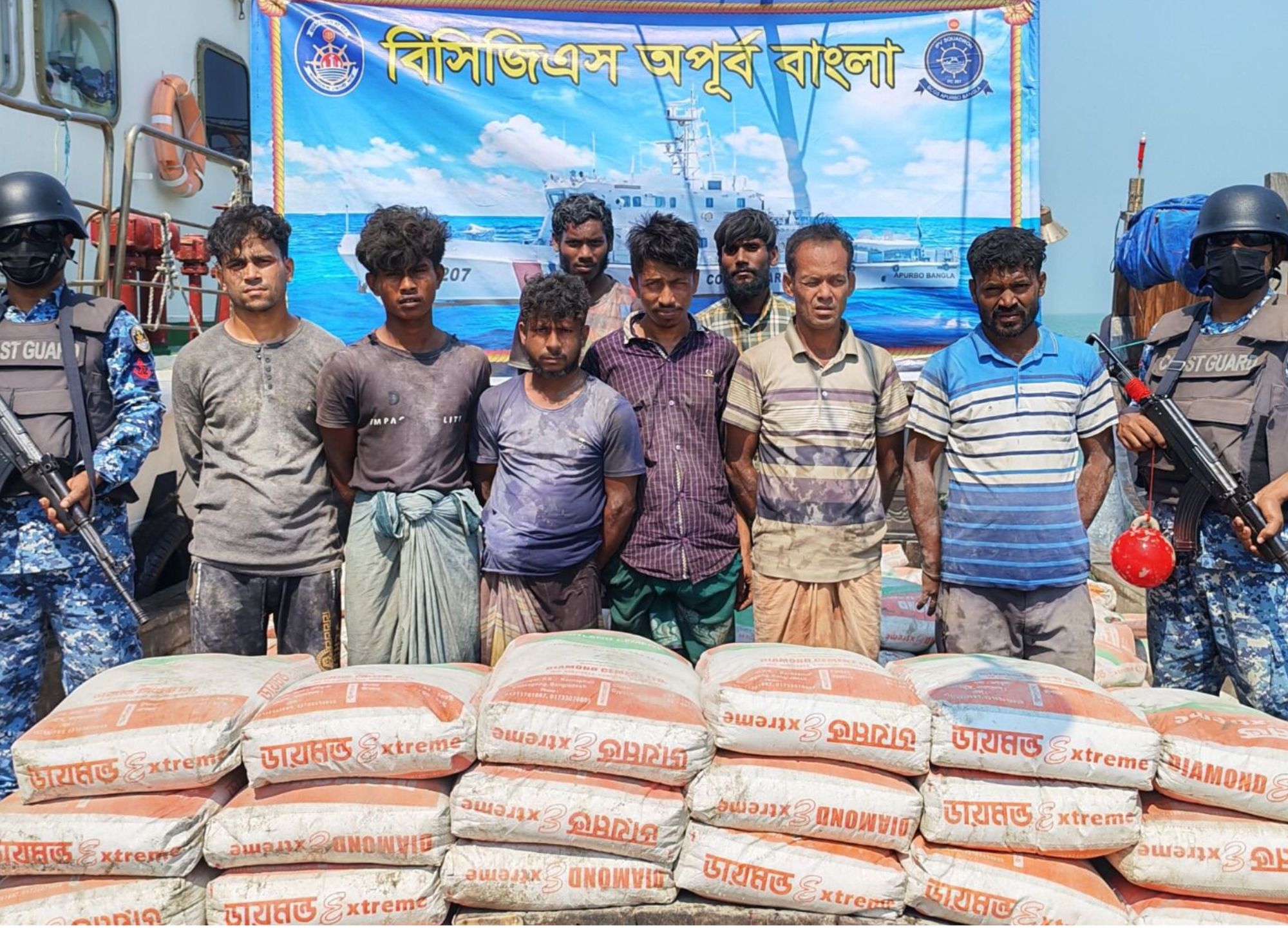 কক্সবাজারে কুতুবদিয়া উপকূলবর্তী সাগরে মিয়ানমার পাচারকালে সাড়ে ৫০০ বস্তা সিমেন্ট এবং বহনকারি ট্রলারসহ আট পাচারকারিকে আটক করেছে কোস্ট গার্ড।
