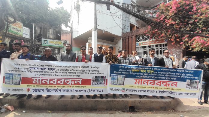 দৈনিক কালের প্রতিচ্ছবি পত্রিকার সম্পাদক ও প্রকাশক, বাংলাদেশ সাংবাদিক কমিউনিটি (বিএসসি)’র প্রতিষ্ঠাতা সদস্য হাসান আল মামুন’র খাগড়াছড়ির মাটিরাঙ্গার বাড়িতে সন্ত্রাসী হামলাসহ সারাদেশে বিভিন্ন গণমাধ্যমে কর্মরত সাংবাদিক ও তাদের পরিবারের সদস্যদের উপর হামলার প্রতিবাদে এবং দোষীদের দ্রুত আইনের আওতায় আনার দাবিতে মানববন্ধন করেছে চট্টগ্রাম রিপোর্টার্স অ্যাসোসিয়েশন(সিআরএ)।
